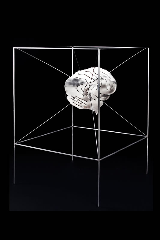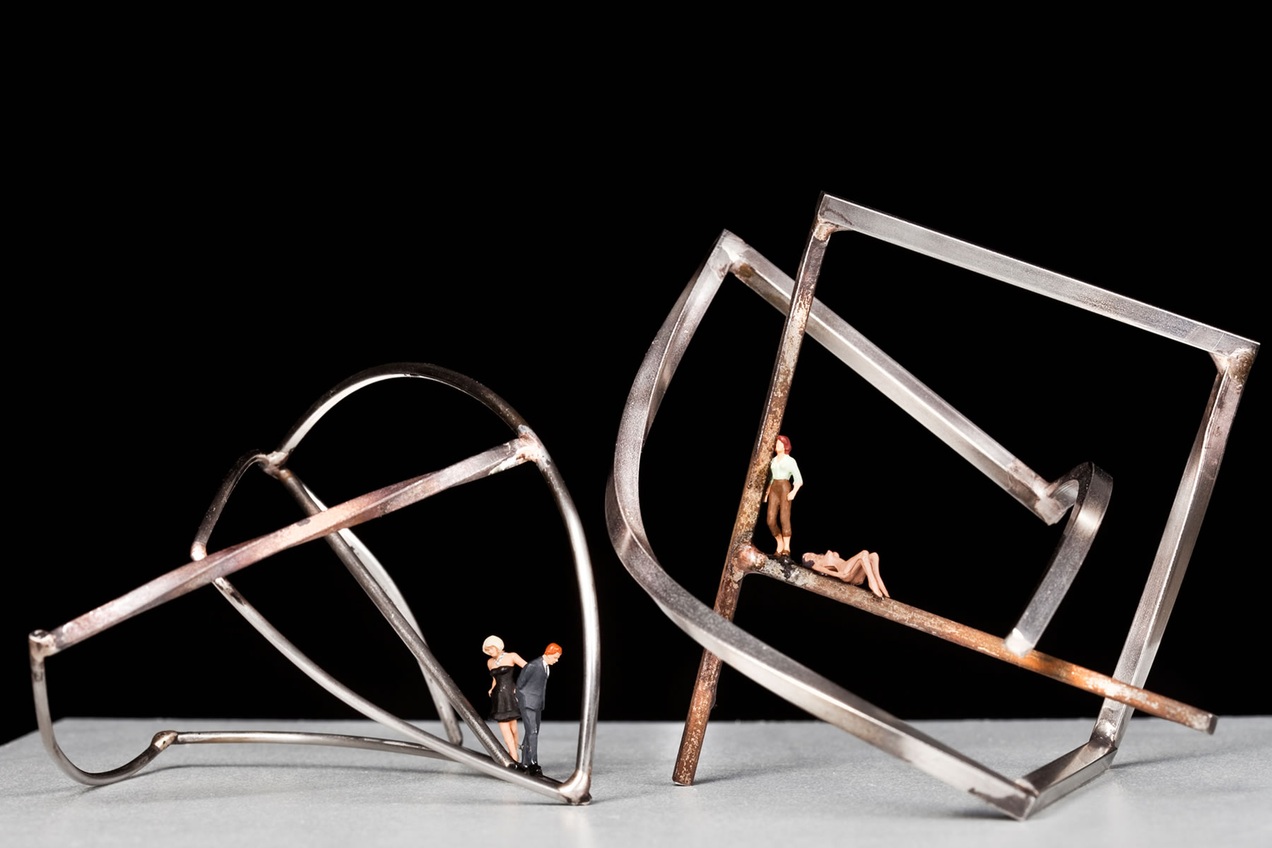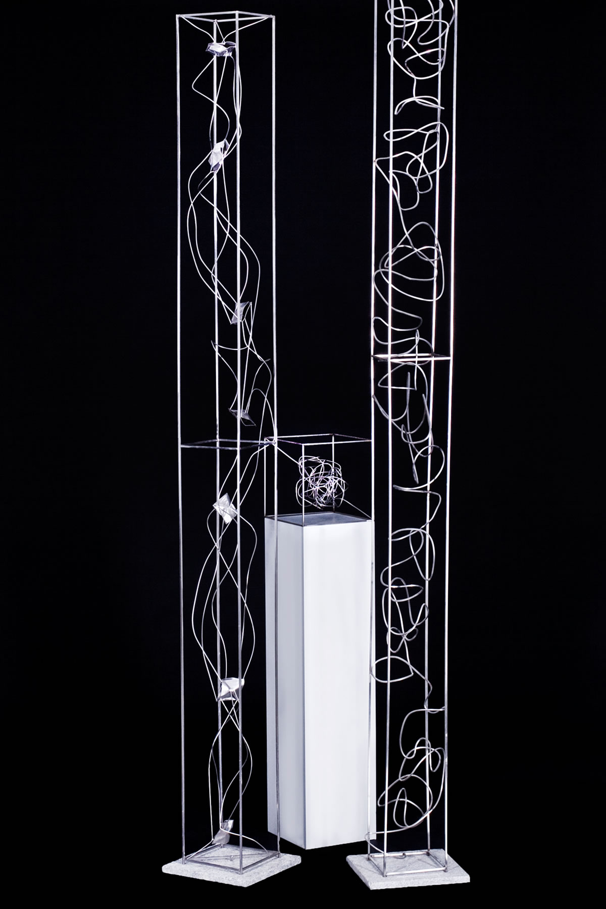 Schaltstellen, Aufsteigende Gedanken, Verwirrung. Material Edelstahl, Granit.